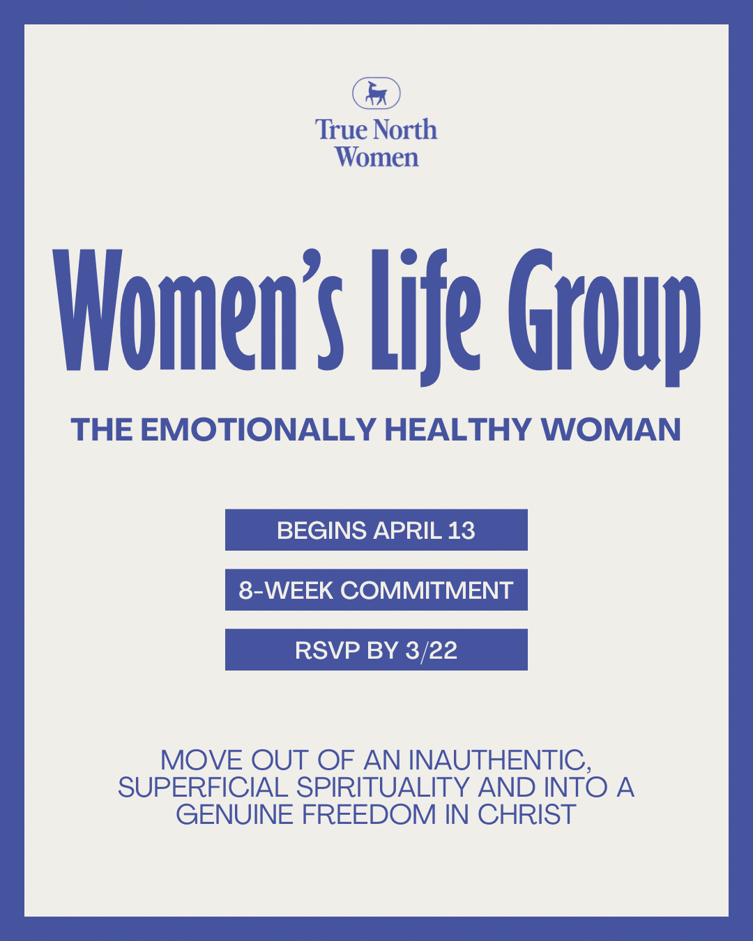 Women's Life Groups will begin meeting for eight weeks beginning the week of April 13th and ending on the week of June 1st. Because consistency is imperative to the integrity of this experience, we kindly ask that you commit to being available for at least seven of the eight weeks of gathering.